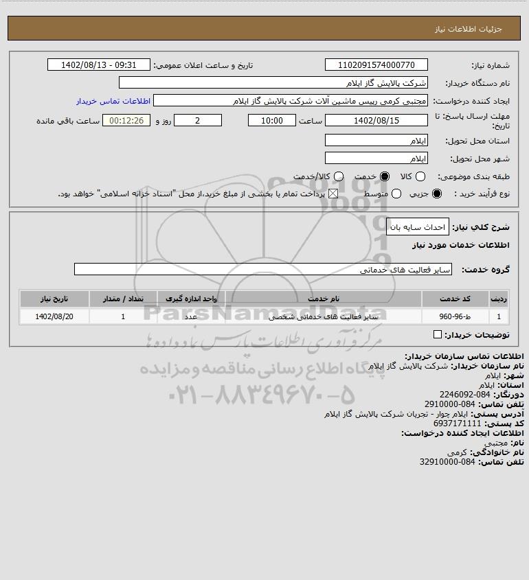 نام دستگاه خریدار:شرکت پالایش گاز ایلام