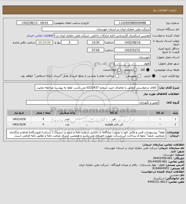 نام دستگاه خریدار:شرکت ملی حفاری ایران در استان خوزستان