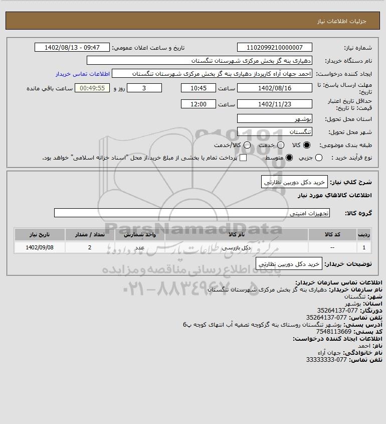نام دستگاه خریدار:دهیاری بنه گز بخش مرکزی شهرستان تنگستان