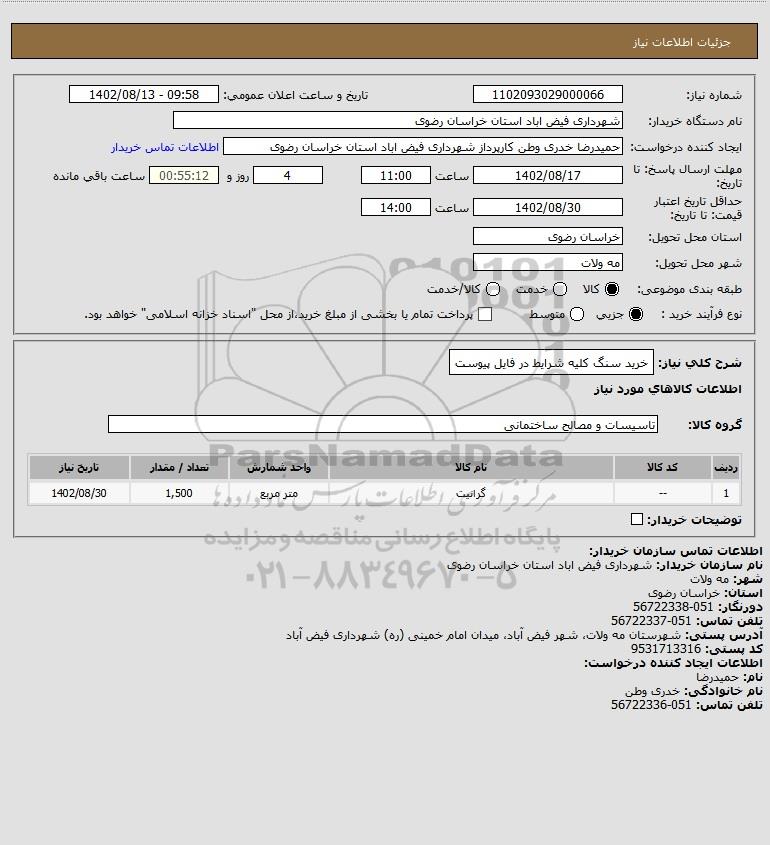 | 1 | -- | گرانیت | متر مربع | 1,500 | 1402/08/30 |