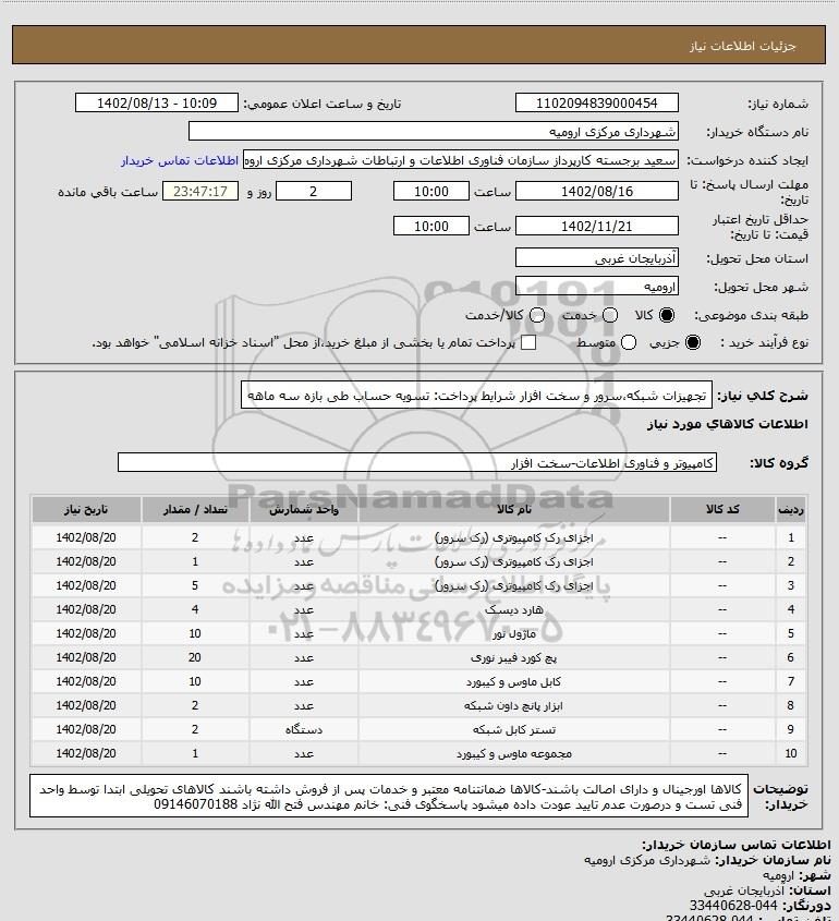 استعلام تجهیزات شبکه،سرور و سخت افزار شرایط پرداخت: تسویه حساب طی بازه سه ماهه, استعلام تجهیزات شبکه،سرور و سخت افزار شرایط پرداخت: تسویه حساب طی بازه سه ماهه