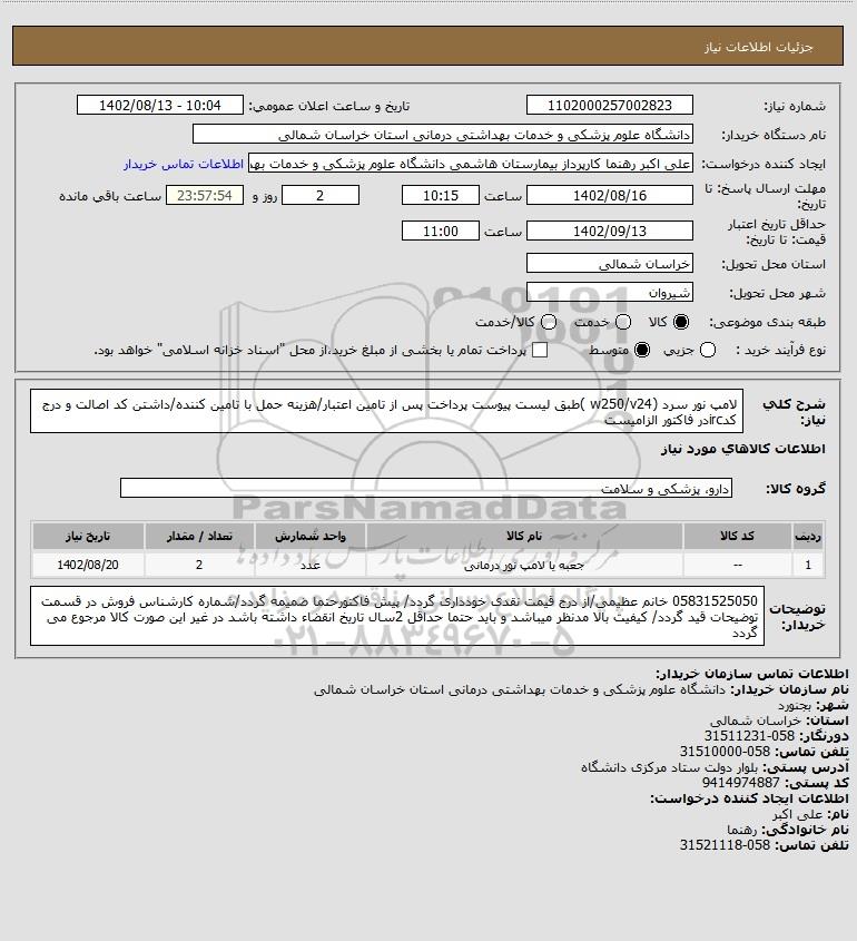 نام دستگاه خریدار:دانشگاه علوم پزشکی و خدمات بهداشتی درمانی استان خراسان شمالی