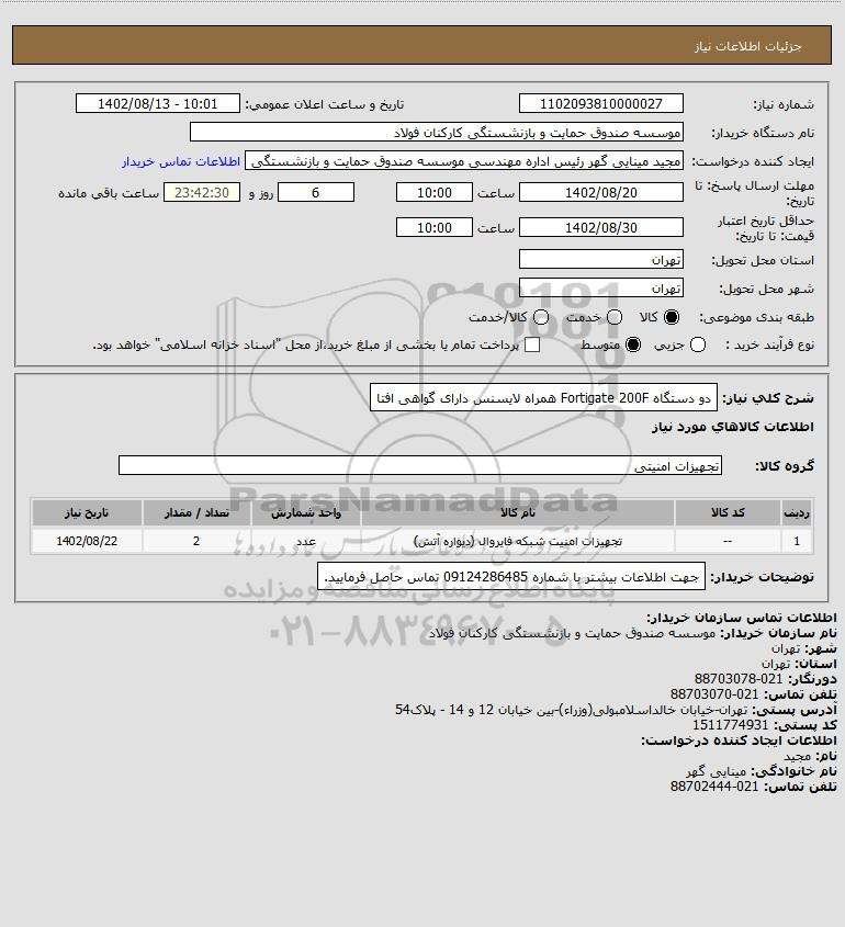 استعلام دو دستگاه Fortigate 200F همراه لایسنس دارای گواهی افتا, استعلام دو دستگاه Fortigate 200F همراه لایسنس دارای گواهی افتا