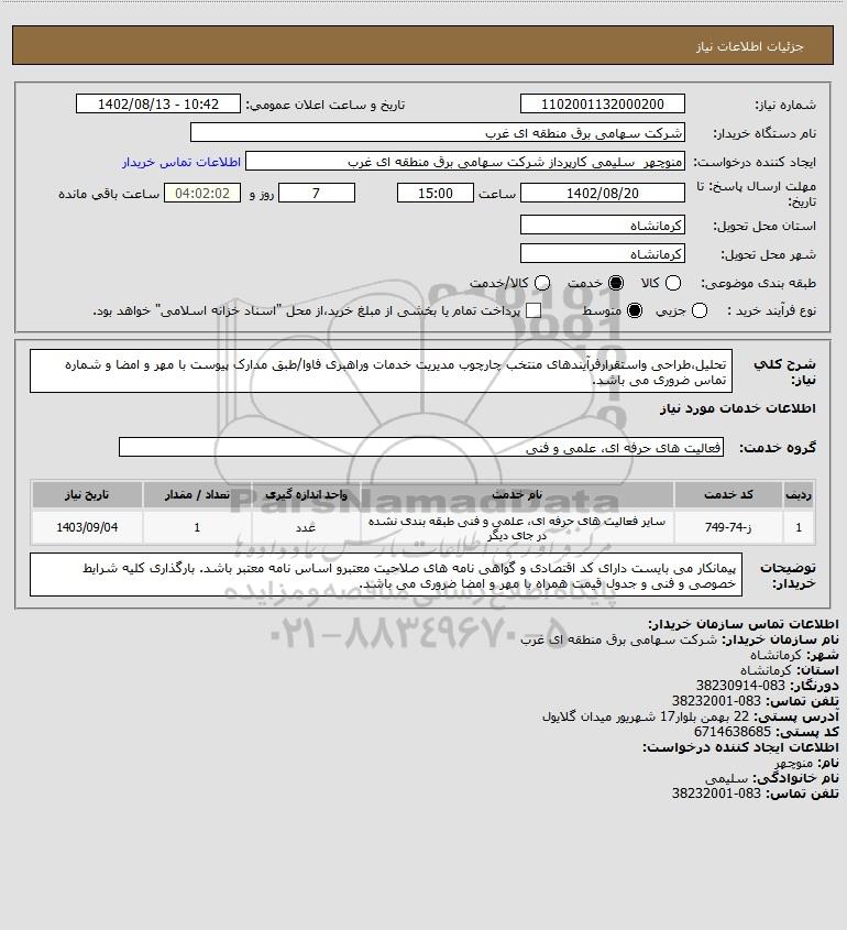 نام دستگاه خریدار:شرکت سهامی برق منطقه ای غرب