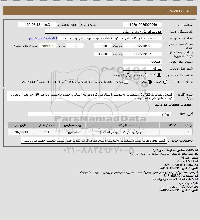 نام سازمان خریدار: مدیریت اموزش و پرورش مبارکه
