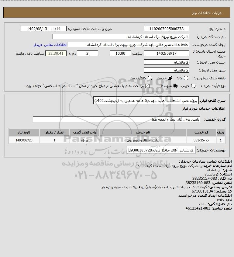 نام دستگاه خریدار:شرکت توزیع نیروی برق استان کرمانشاه