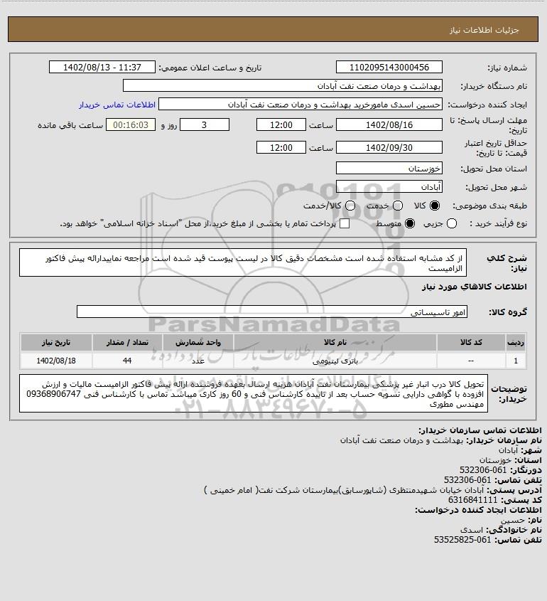 1 -- باتری لیتیومی عدد 44 1402/08/18