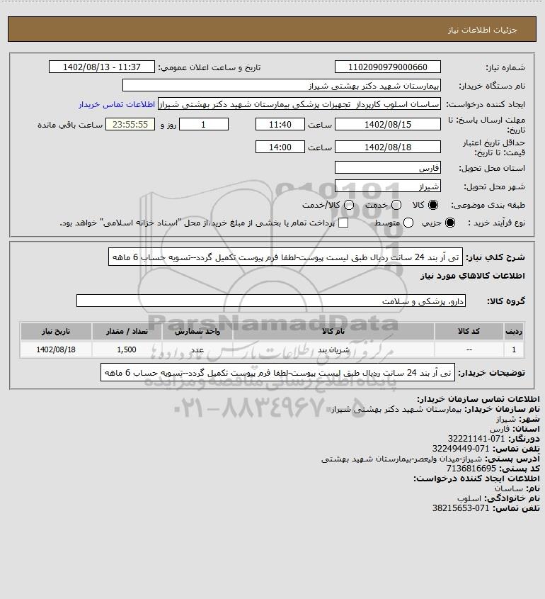 نام سازمان خریدار: بیمارستان شهید دکتر بهشتی شیراز