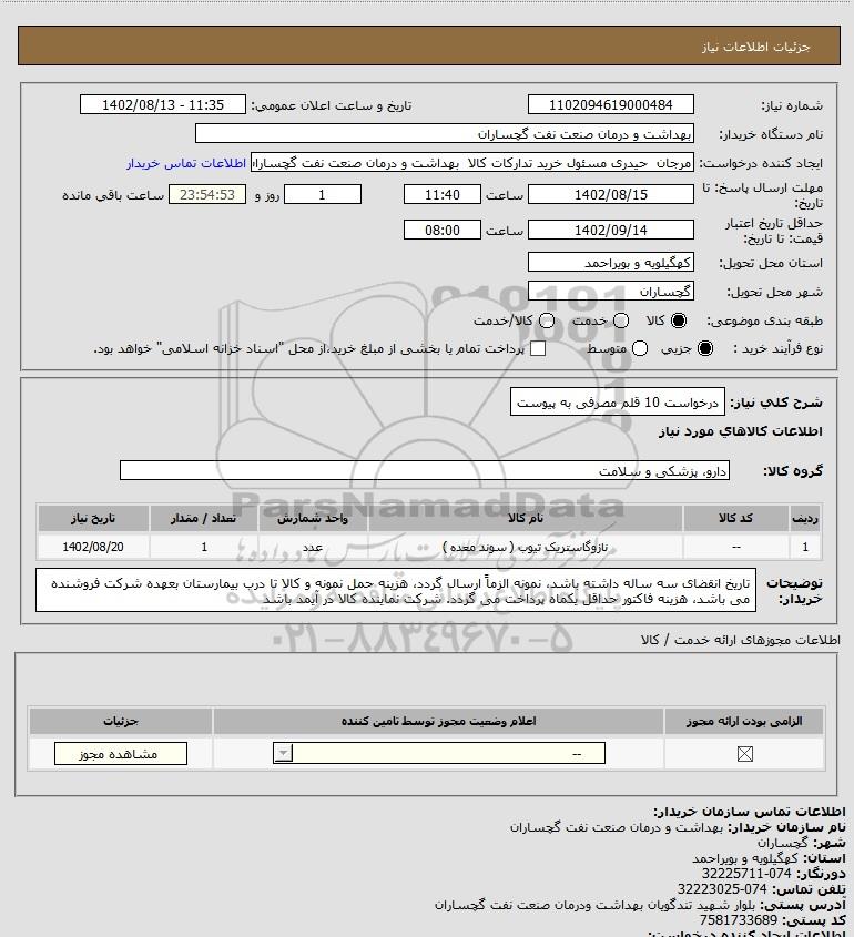نام دستگاه خریدار:بهداشت و درمان صنعت نفت گچساران