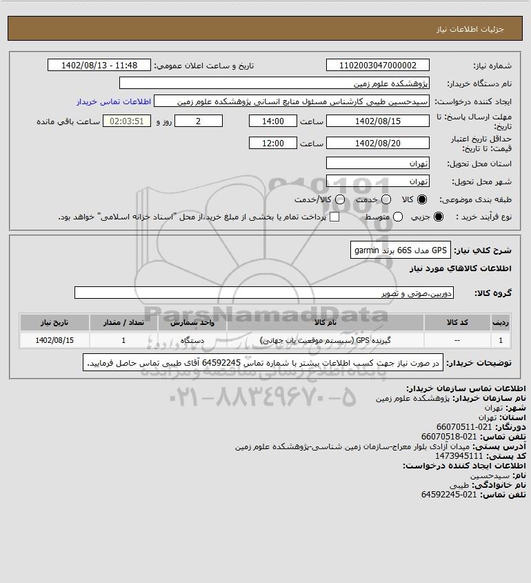نام دستگاه خریدار:پژوهشکده علوم زمین