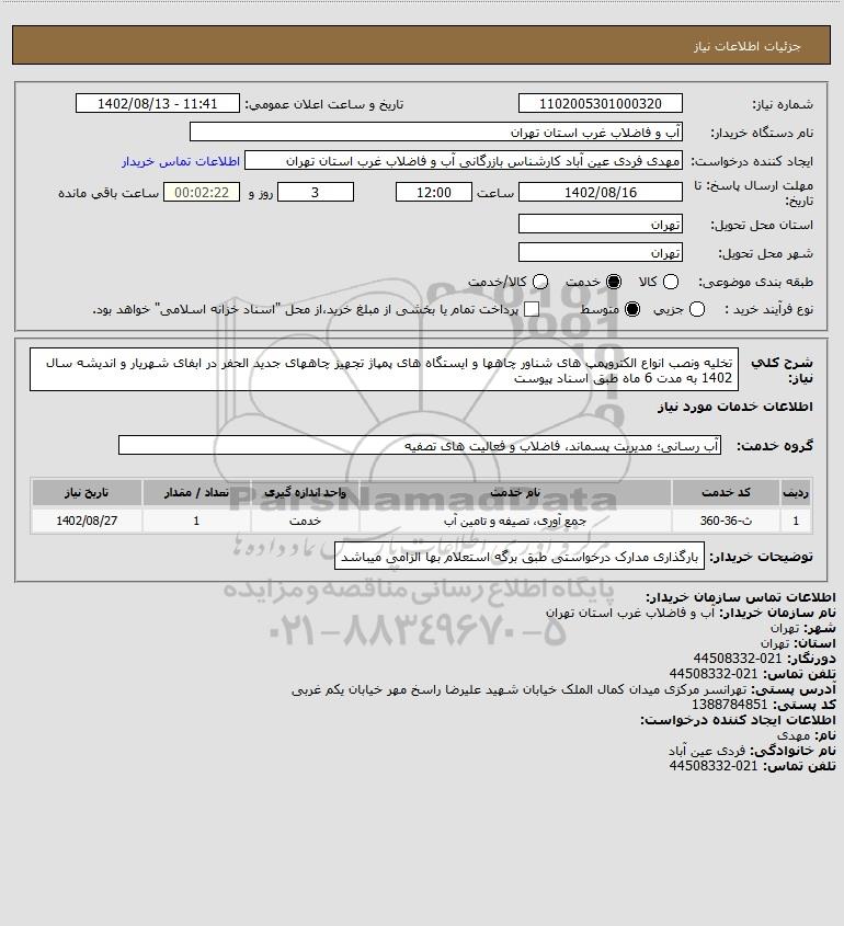 نام دستگاه خریدار:آب و فاضلاب غرب استان تهران