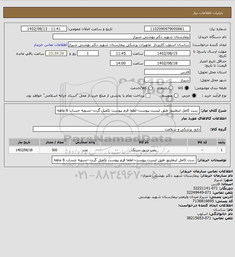 نام دستگاه خریدار:بیمارستان شهید دکتر بهشتی شیراز