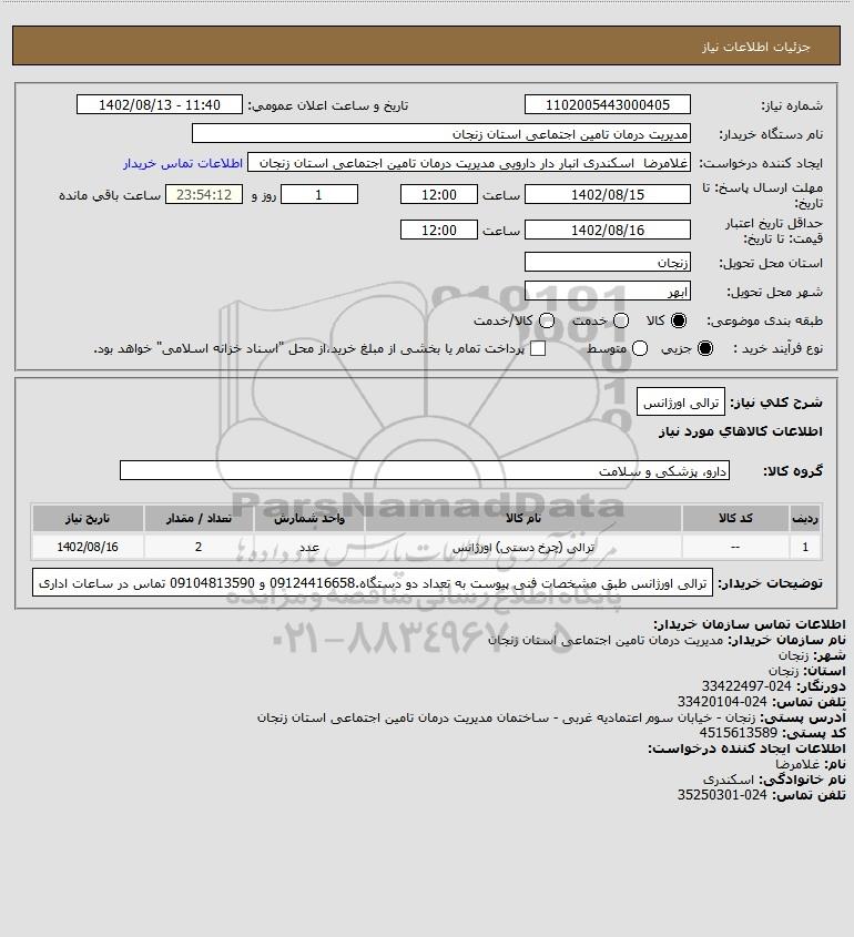 | 1 | -- | ترالی (چرخ دستی) اورژانس | عدد | 2 | 1402/08/16 |