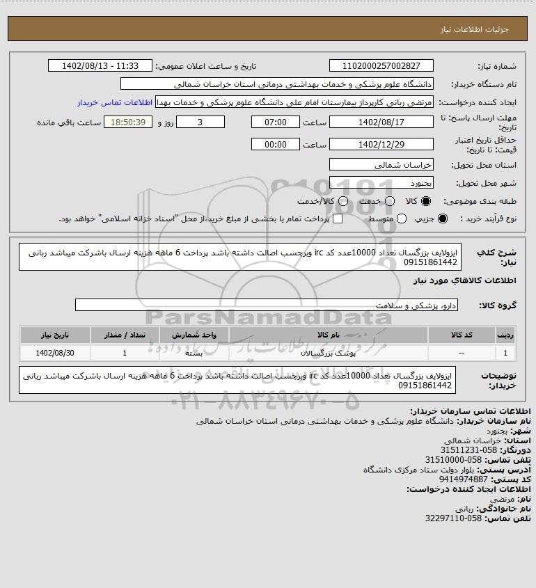 نام دستگاه خریدار:دانشگاه علوم پزشکی و خدمات بهداشتی درمانی استان خراسان شمالی