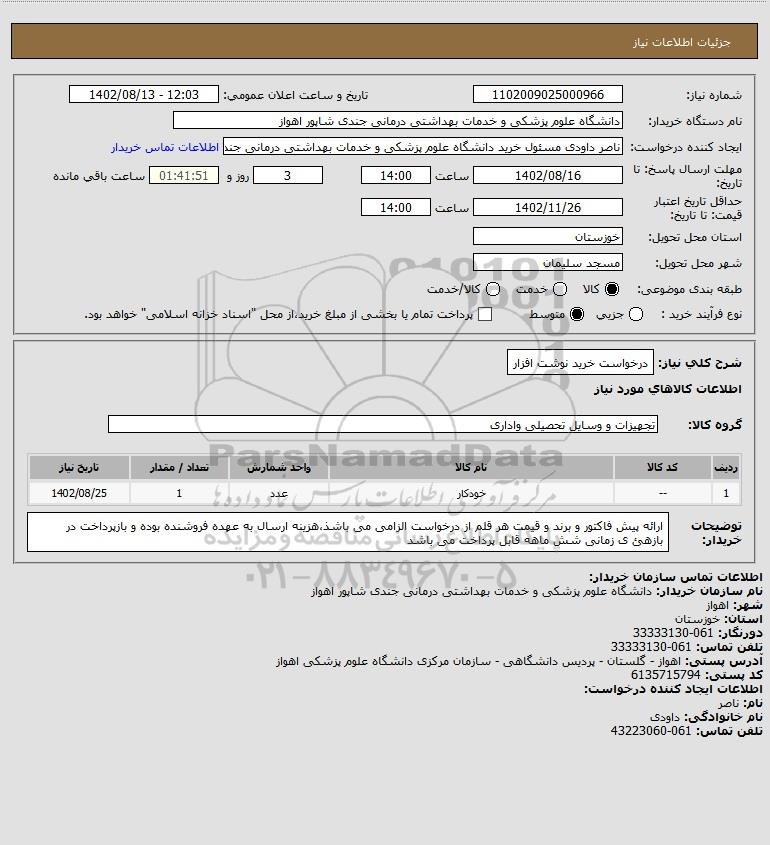 شرح کلی نیاز: درخواست خرید نوشت افزار