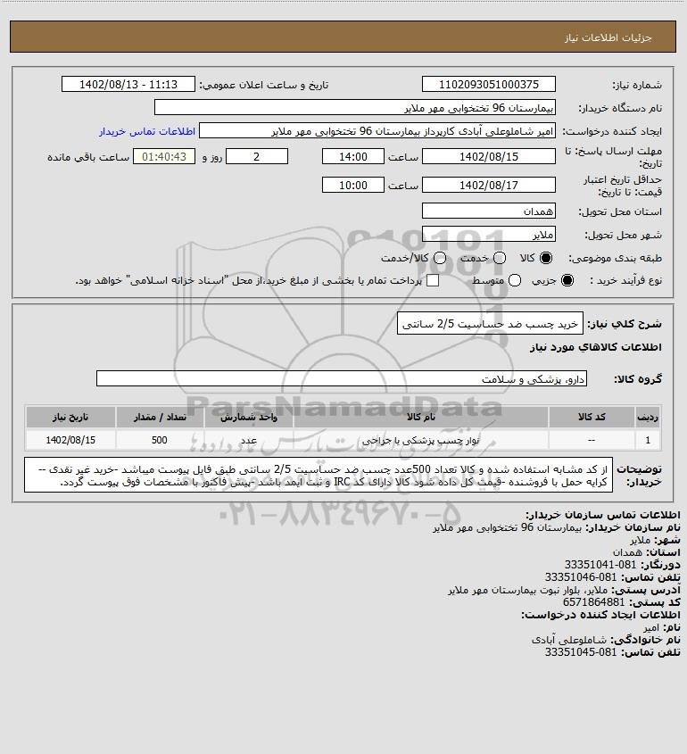 شرح کلی نیاز: خرید چسب ضد حساسیت 2/5 سانتی