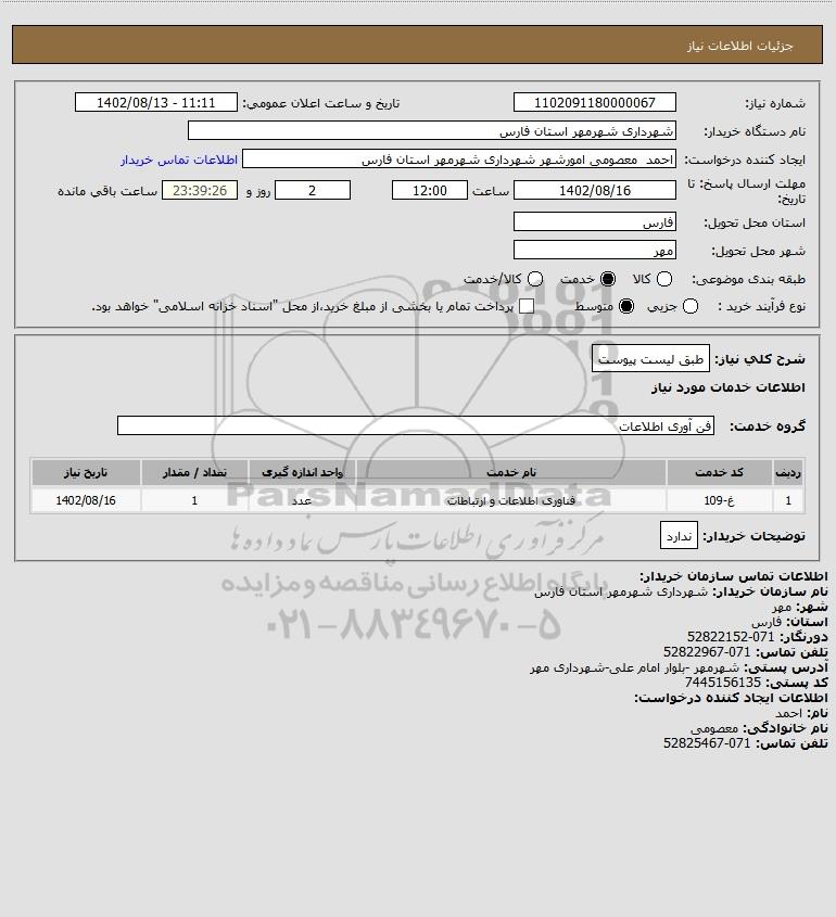 نام دستگاه خریدار:شهرداری شهرمهر استان فارس