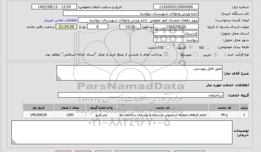 نام سازمان خریدار: اداره ورزش وجوانان شهرستان دیواندره