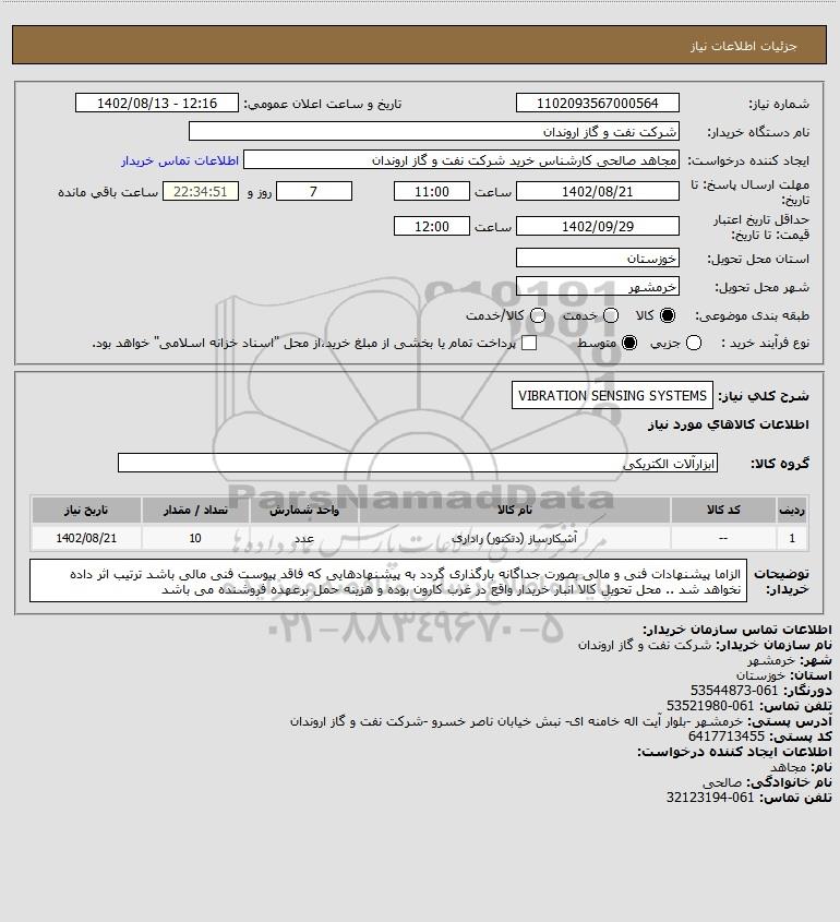 شرح کلی نیاز: VIBRATION SENSING SYSTEMS