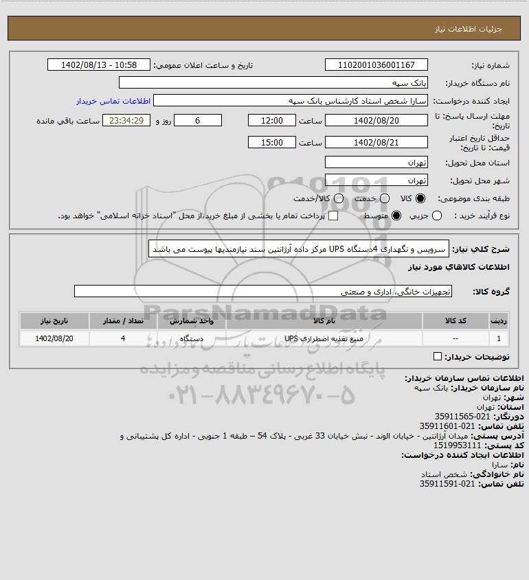 | 1 | -- | منبع تغذیه اضطراری UPS | دستگاه | 4 | 1402/08/20 |