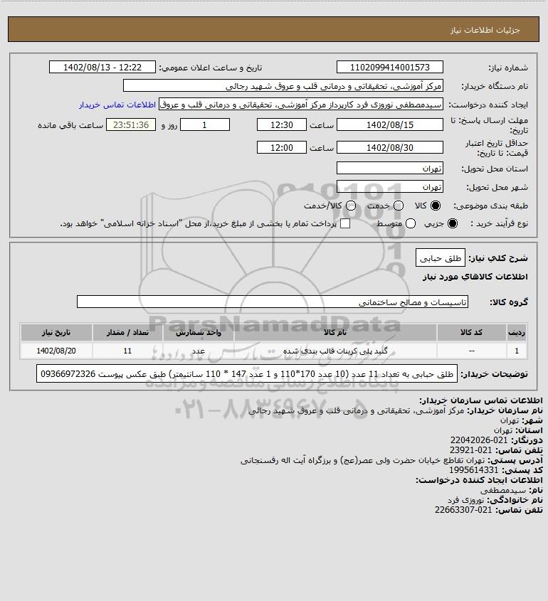 نام دستگاه خریدار:مرکز آموزشی، تحقیقاتی و درمانی قلب و عروق شهید رجائی