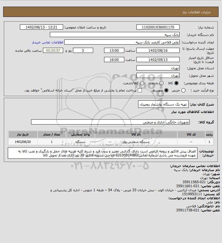 استعلام تهیه یک دستگاه پولشمار رومیزی, استعلام تهیه یک دستگاه پولشمار رومیزی