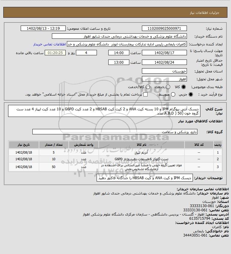 نام دستگاه خریدار:دانشگاه علوم پزشکی و خدمات بهداشتی درمانی جندی شاپور اهواز