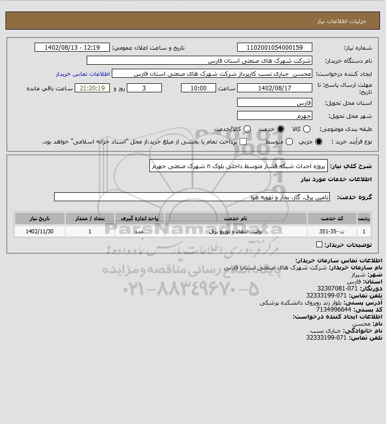 شرح کلی نیاز: پروژه احداث شبکه فشار متوسط داخلی بلوک n شهرک صنعتی جهرم