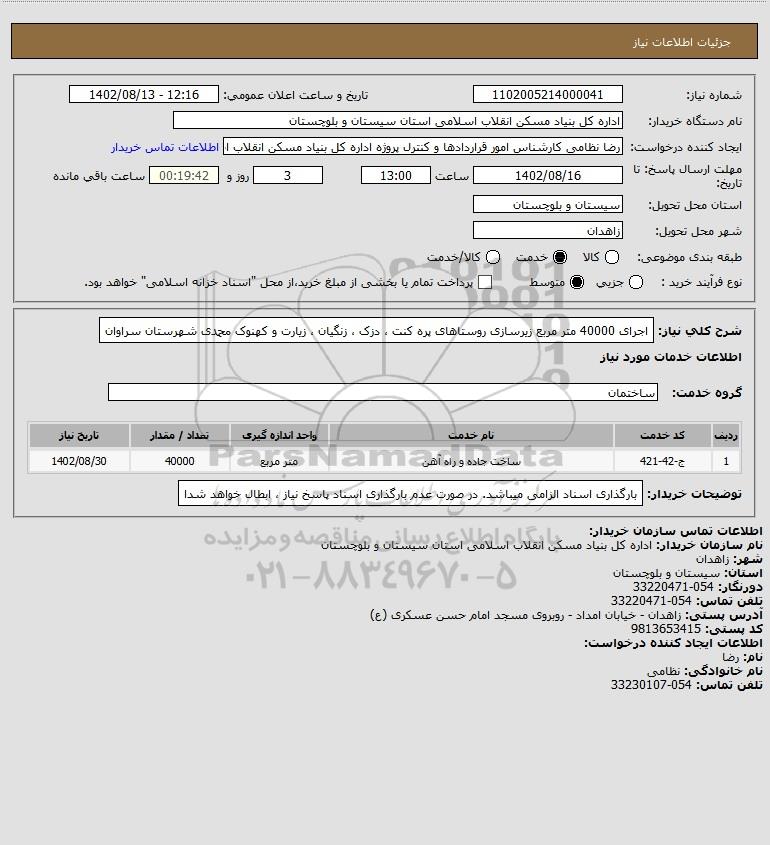 نام دستگاه خریدار:اداره کل بنیاد مسکن انقلاب اسلامی استان سیستان و بلوچستان