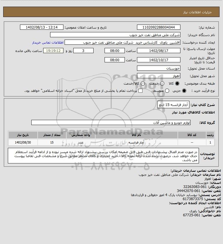 شرح کلی نیاز: آچار فرانسه 15 اینچ