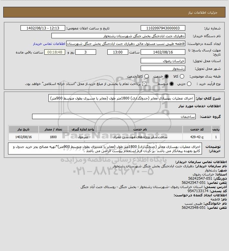 شرح کلی نیاز: اجرای عملیات بهسازی معابر (جدولگذاری) 1800متر طول (معابر یا مسیری بطول متوسط 900متر)