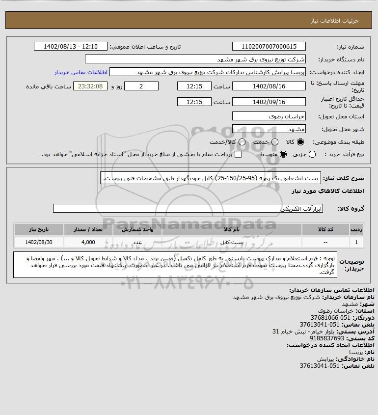نام دستگاه خریدار:شرکت توزیع نیروی برق شهر مشهد