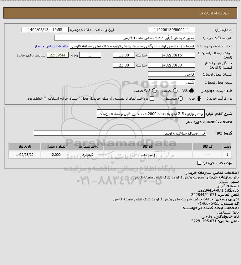 شرح کلی نیاز: واشر وایتون 2.5 اینچ به تعداد 2000 عدد طبق فایل و نقشه پیوست