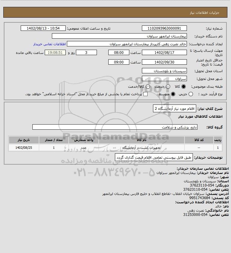 نام دستگاه خریدار:بیمارستان ایرانمهر سراوان