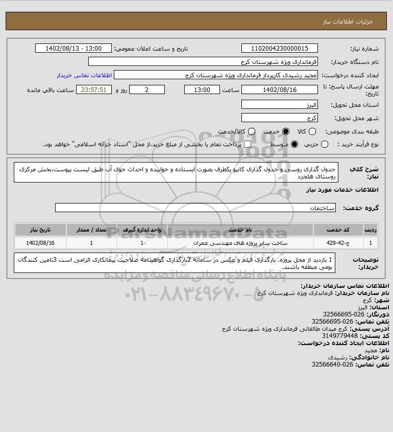 نام سازمان خریدار: فرمانداری ویژه شهرستان کرج