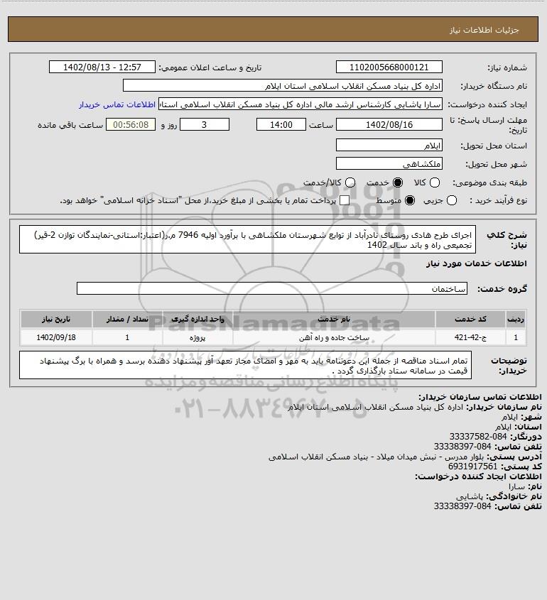 نام دستگاه خریدار:اداره کل بنیاد مسکن انقلاب اسلامی استان ایلام