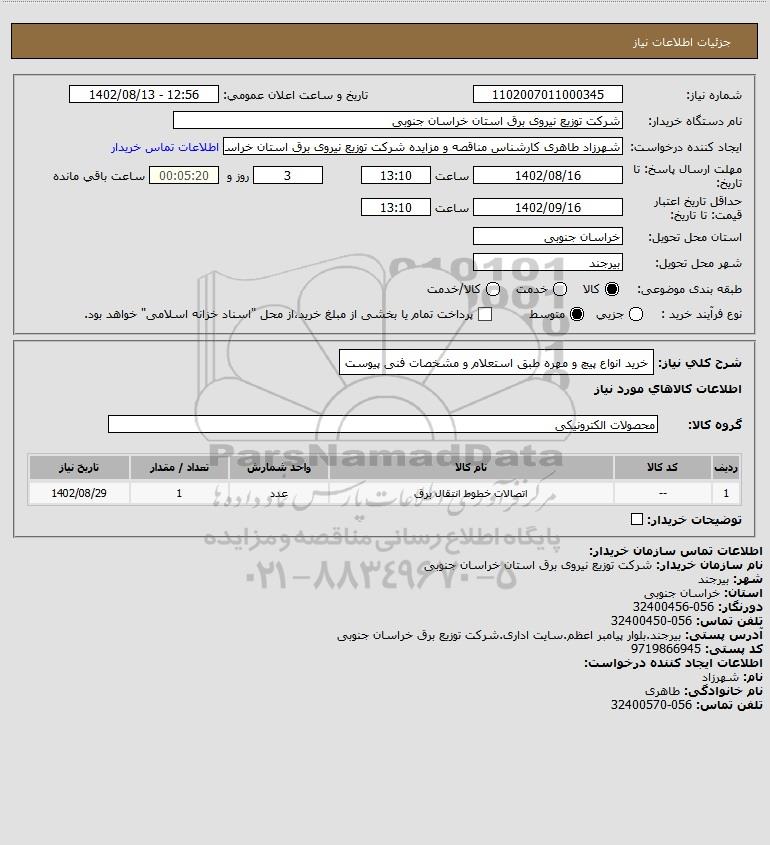 نام دستگاه خریدار:شرکت توزیع نیروی برق استان خراسان جنوبی