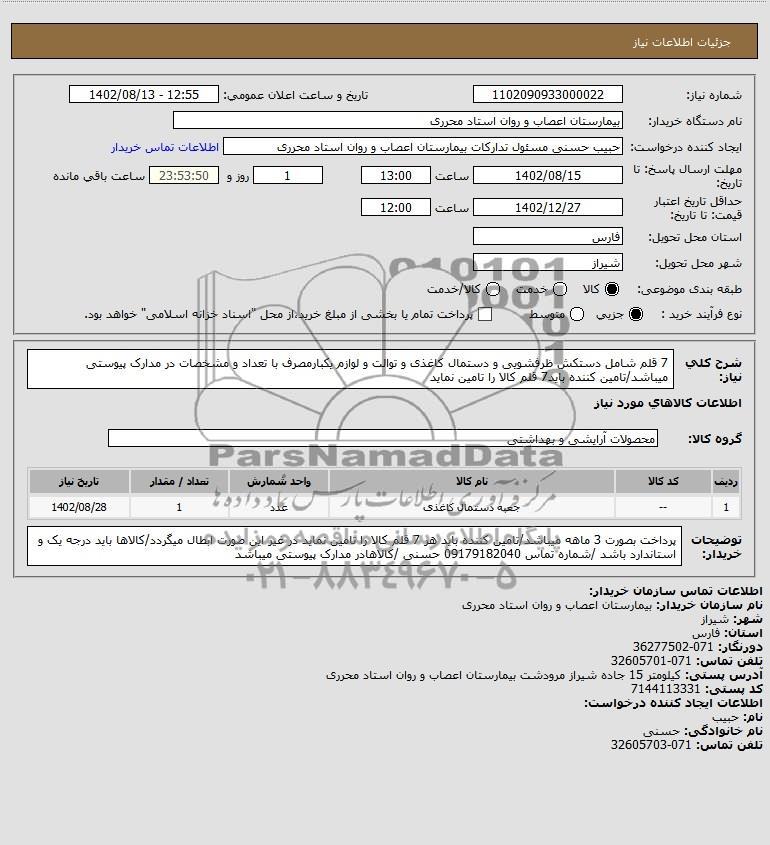 نام دستگاه خریدار:بیمارستان اعصاب و روان استاد محرری