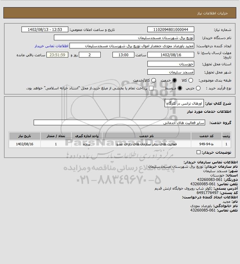 شرح کلی نیاز: اورهال ترانس در کارگاه