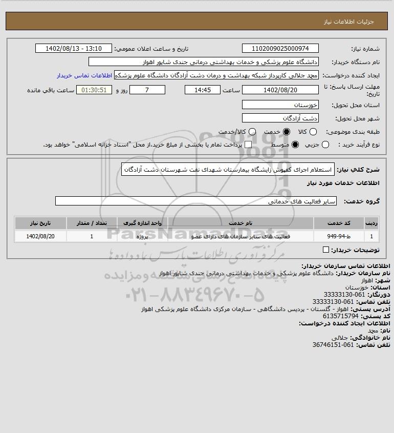 نام سازمان خریدار: دانشگاه علوم پزشکی و خدمات بهداشتی درمانی جندی شاپور اهواز