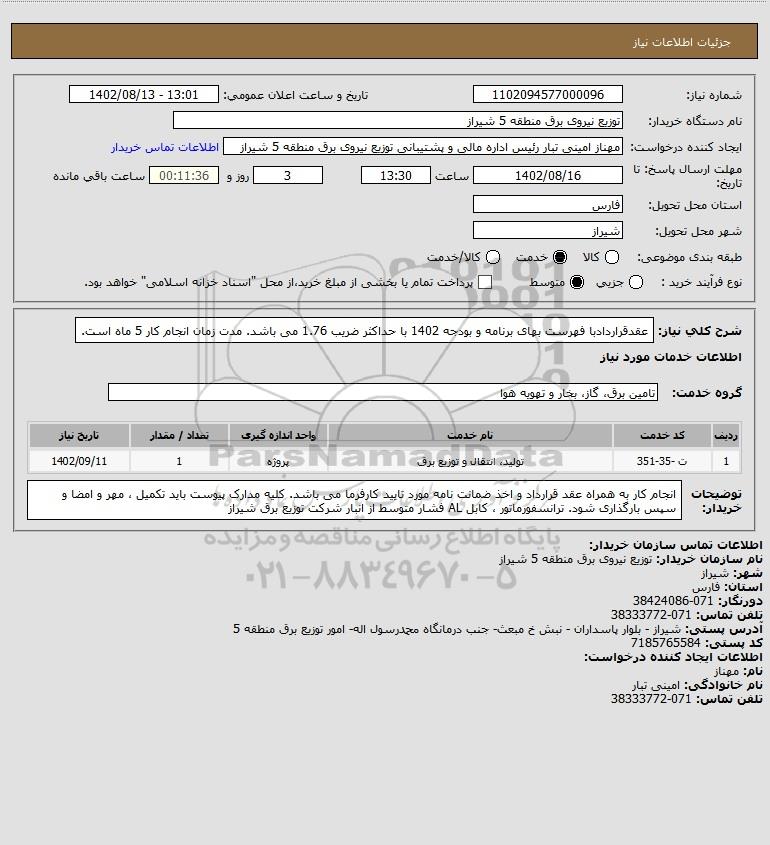 نام دستگاه خریدار:توزیع نیروی برق منطقه 5 شیراز