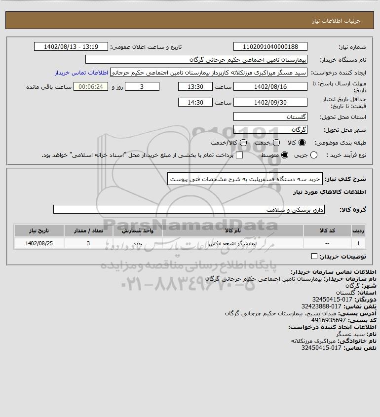 نام دستگاه خریدار:بیمارستان تامین اجتماعی حکیم جرجانی گرگان