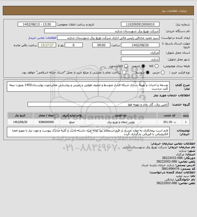 نام دستگاه خریدار:شرکت توزیع برق شهرستان شازند