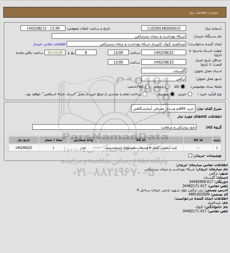 شرح کلی نیاز: خرید 93قلم وسایل مصرفی آزمایشگاهی