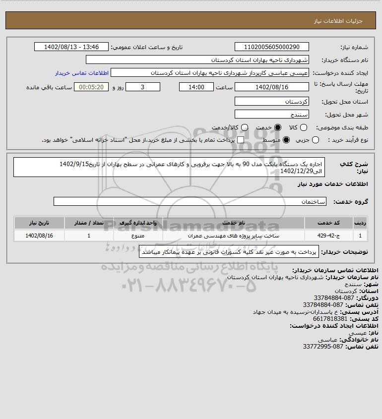 نام دستگاه خریدار:شهرداری ناحیه بهاران استان کردستان