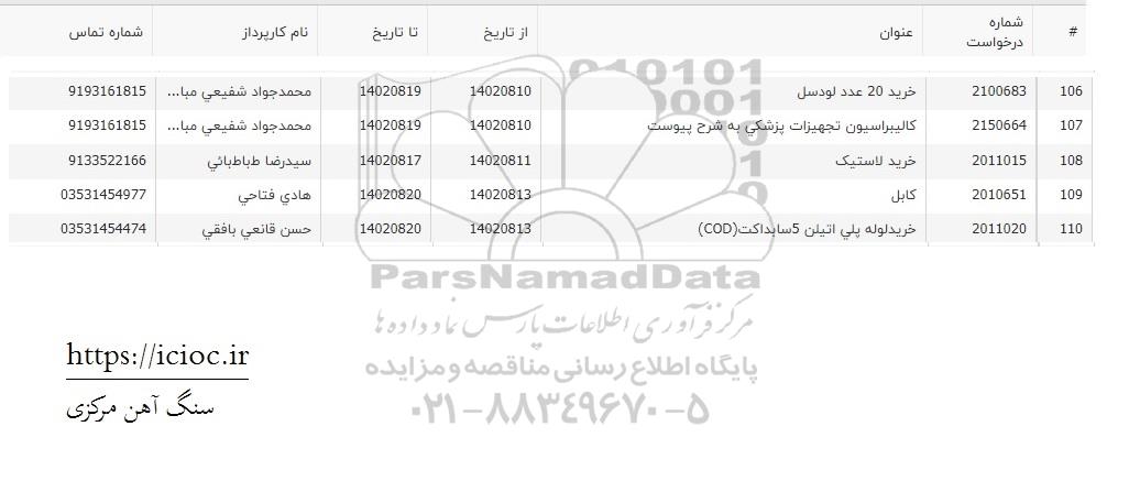 | شماره درخواست | عنوان | تا تاریخ | نام کارپرداز | شماره تماس | |