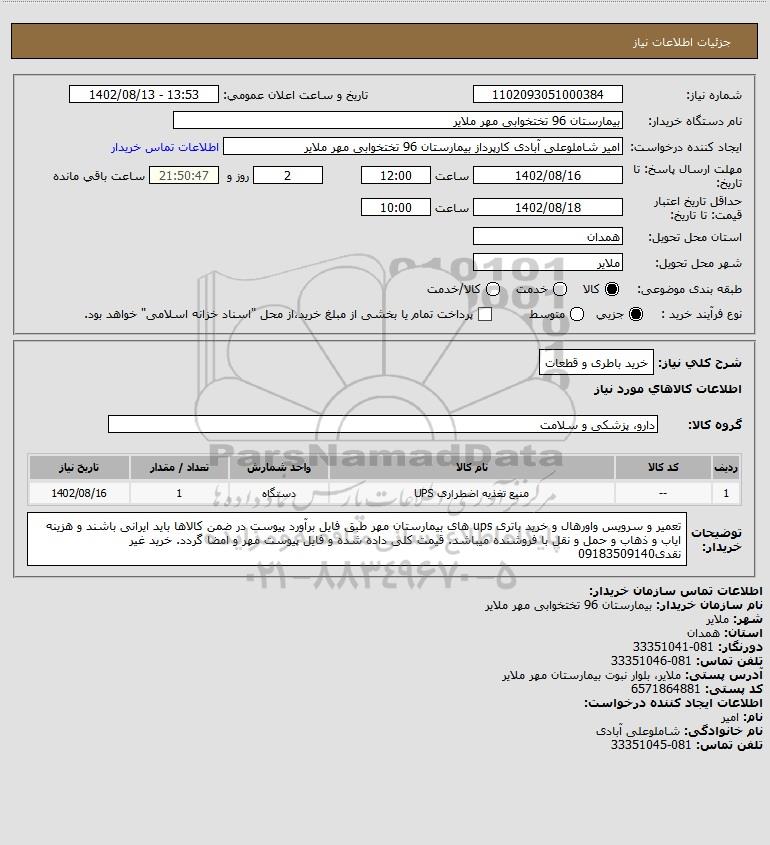 استعلام خرید باطری و قطعات, استعلام خرید باطری و قطعات