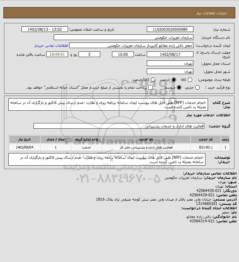 نام دستگاه خریدار:سازمان تعزیرات حکومتی