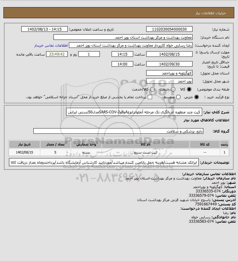نام دستگاه خریدار:معاونت بهداشت و مرکز بهداشت استان بویر احمد