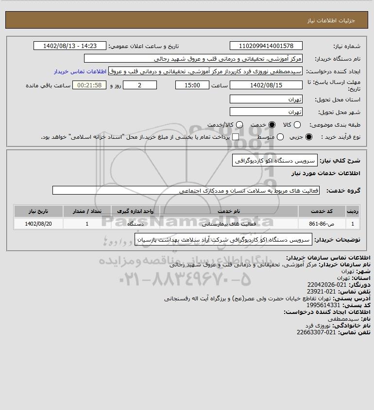 استعلام سرویس دستگاه اکو کاردیوگرافی, استعلام سرویس دستگاه اکو کاردیوگرافی
